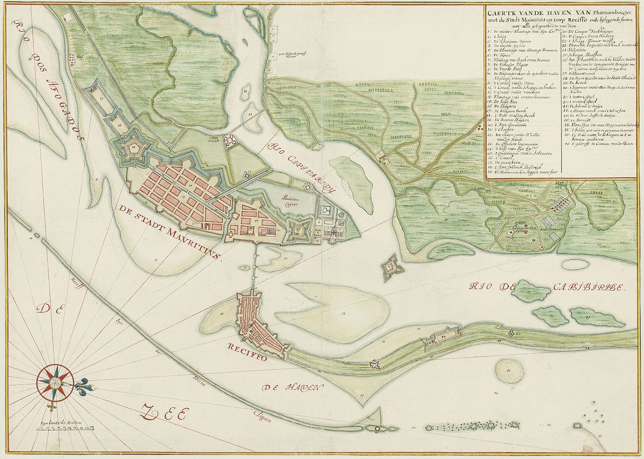 De kust van het noorden van Brazilië, rond de evenaar, precies waar de kustlijn afbuigt naar beneden, is namelijk zo’n 25 jaar een Nederlandse kolonie geweest. De streek heette toen en nu nog steeds Pernambuco en aan de kust hadden de Portugezen vanaf 1534 de nederzettingen Recife en Olinda gesticht en waren daar begonnen met de teelt van suikerriet. Recife is inmiddels de hoofdstad van de Braziliaanse deelstaat Pernambuco en heeft ruim 1,5 miljoen inwoners. Olinda ligt er vlak boven, was rond 1630 veel groter, maar telt nu bijna zo’n 400.000 inwoners.