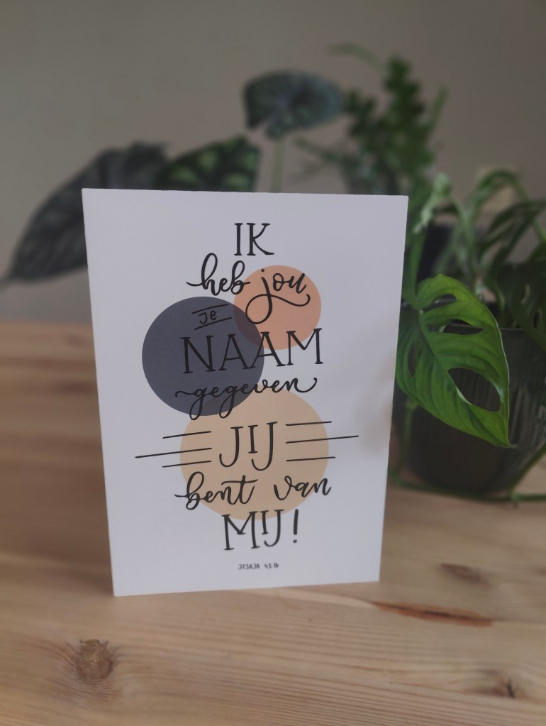Op kinderniveau heb ik dat bij de doopkaart met die prachtige tekst dat de HERE ons bij onze naam geroepen heeft, duidelijk willen maken: de naam van dit kleine baby’tje en van alle gedoopte kinderen wordt nu ook in de hemel door God in het boek van het leven geschreven.