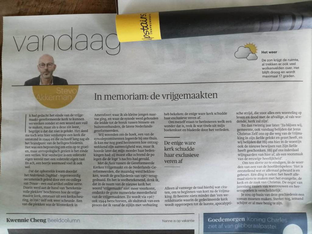 De landelijke synode van de Nederlandse Gereformeerde Kerken heeft in het najaar van 2024 ‘woorden van verootmoediging’ gesproken over hoe er vaak gesproken is over homoseksuele broers en zussen en hoe er naar hen toe gehandeld is. De tekst daarvan vind je hier. De redactie van CVandaag vroeg mij om hierop te reageren.